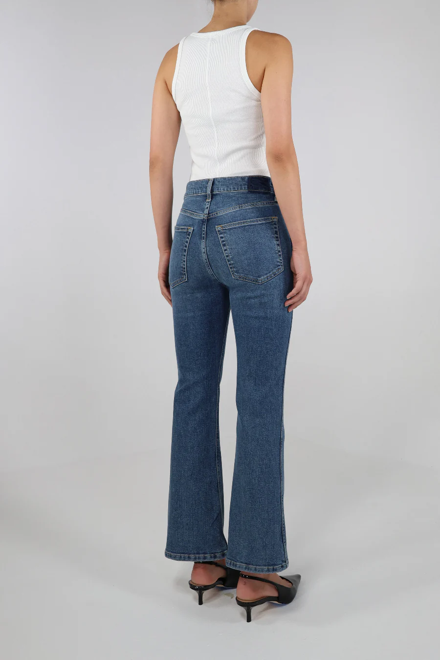 Slimming and chic, Anya fits clean through the hip with a gradual leg opening that finishes past the ankle. A soft comfort stretch denim in a seaonsless wash makes this the perfect 'wear anywhere' jean.