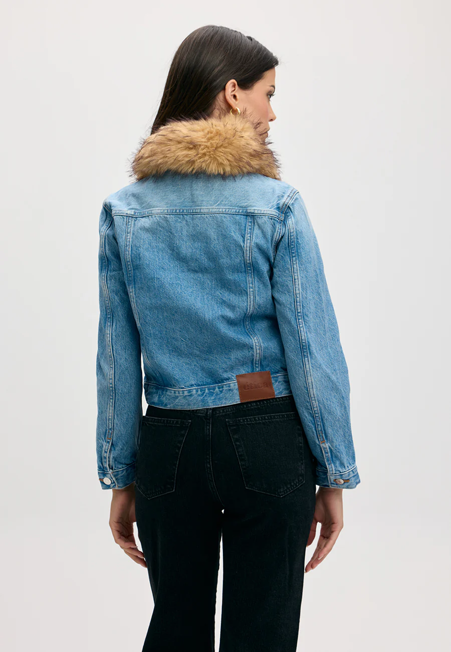 Shrunken, cropped, and statement-ready. Tailored in sun-faded Peachtree with a detachable faux-fur collar, the Pixie Jacket is playful but sharp. Wear it as a set or let it stand alone - it always steals attention.