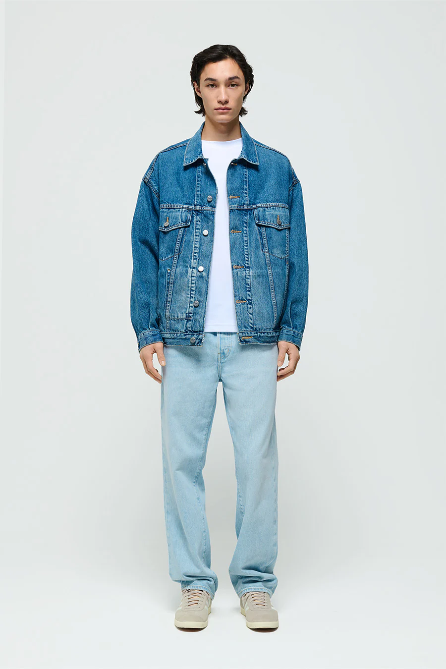 Oversized trucker with a dropped shoulder for a relaxed, modern look with added interior pockets.